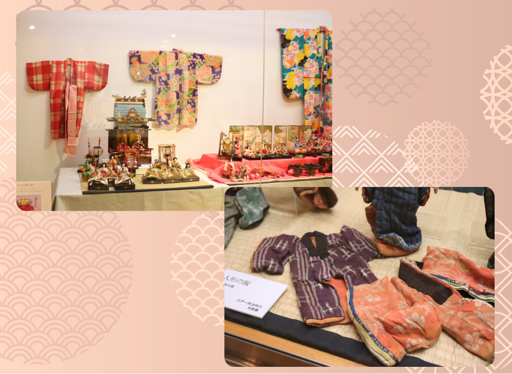 また、当時の被服を再利用して作られた、手作りの人形の服も展示されています。